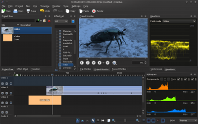 The development team is also slowly growing, and Kdenlive benefits from the recent improvements in the MLT framework(version 0.5.10 is required) and Frei0r effects(version 1.2.0 is recommended) projects.