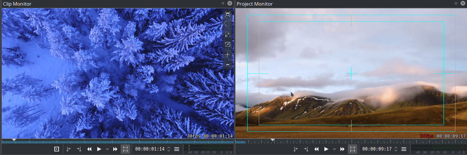 - Shortcut icon in clip monitor to drag only the audio or only the video of a clip in timeline.