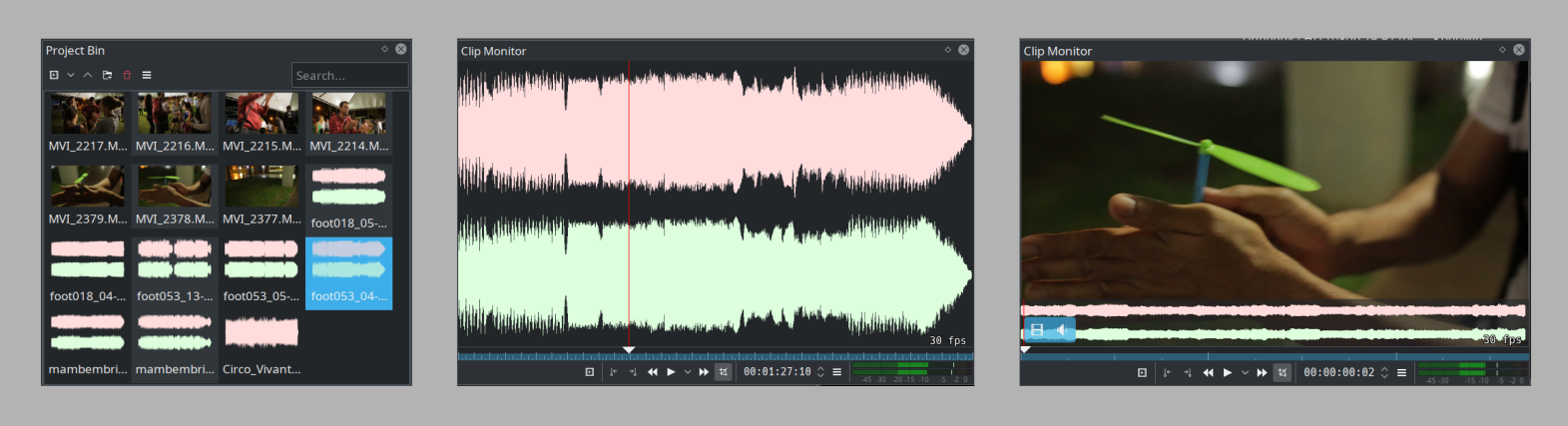 Improvements to audio waveform display in the Project Bin and the Clip Monitor.