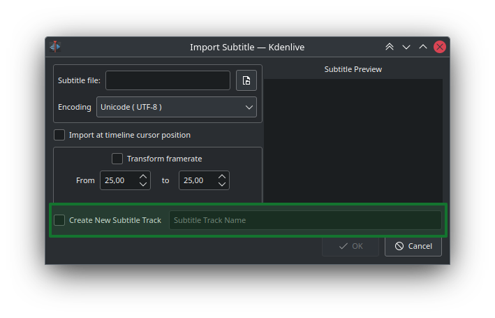 Now, in the Import Subtitle dialog, you have the option to create a new subtitle instead of replacing the previous one.