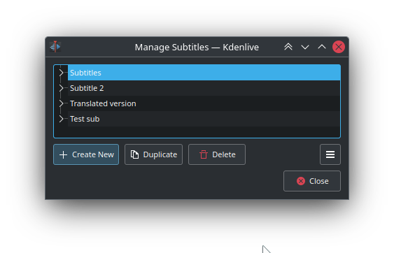 A subtitle manager dialog has been implemented to facilitate the import and export of subtitles.
